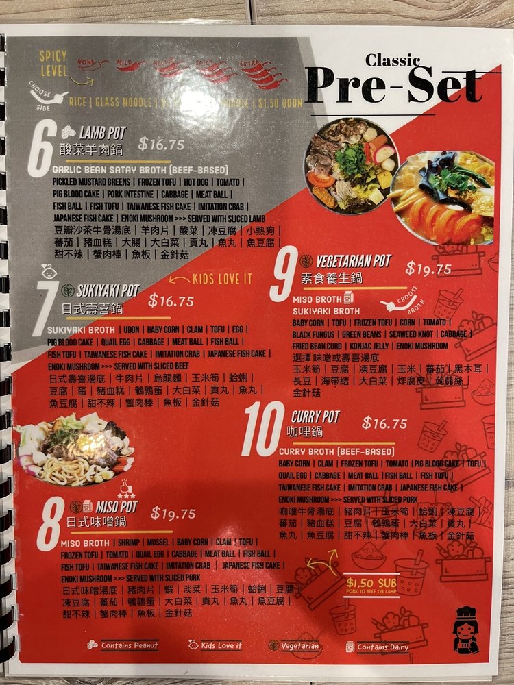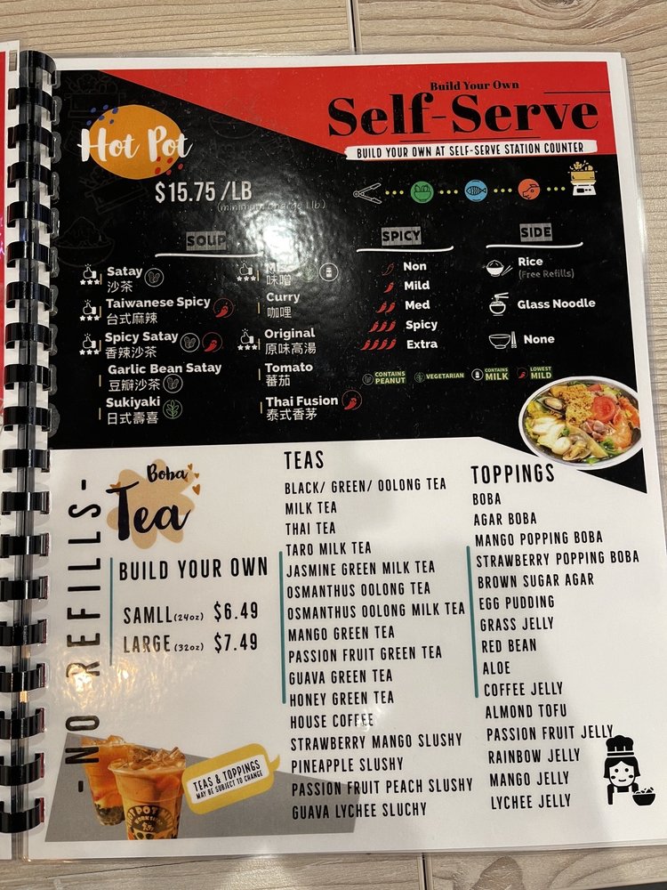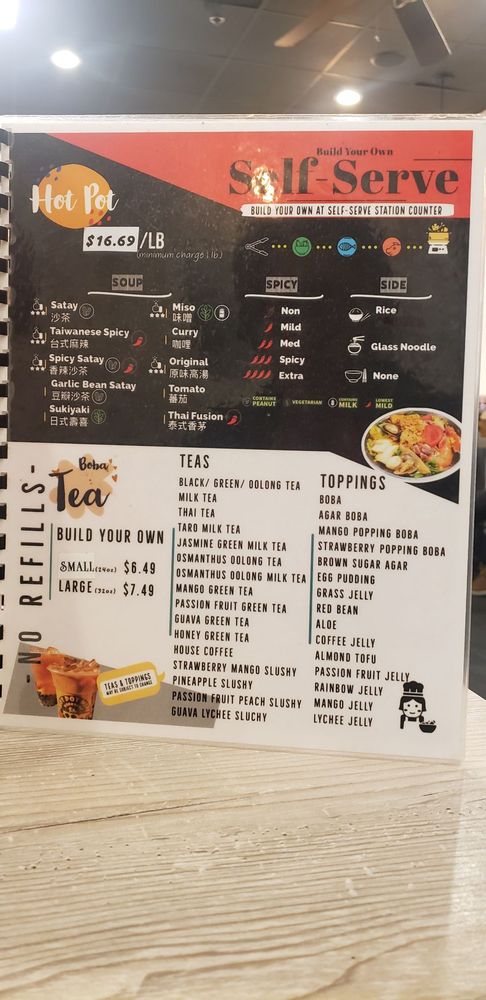 Hot Pot Mini Workshop in Ontario, CA offers a unique dining experience with customizable hot pots and a DIY boba bar. The menu includes house special pots like the Fermented Tofu pot, seafood pot, and curry pot, along with a variety of add-ons such as baby corn, duck pudding, and eggs. Guests can also choose from a selection of drinks, including tea with free toppings, Coke, Sprite, and bottled water. The restaurant provides a welcoming atmosphere with friendly service and a range of amenities like outdoor seating, Wi-Fi, and alcohol offerings. Customers rave about the fresh ingredients, flavorful broths, and the option to build their own hot pots to suit their preferences. For an affordable and tasty hot pot experience, Hot Pot Mini Workshop is a top choice in the Inland Empire.
